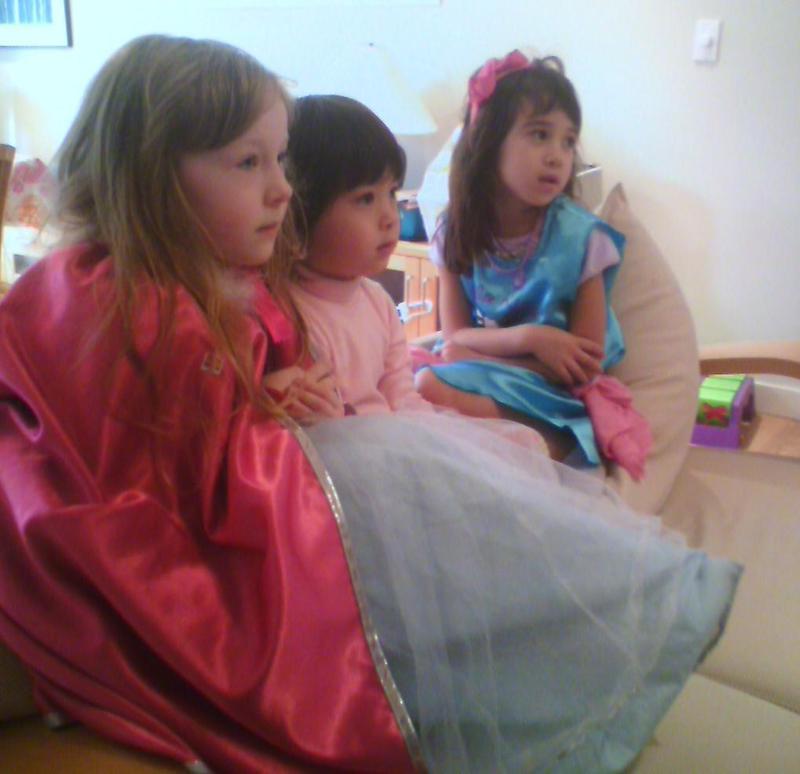 Girls learn a knock-knock joke. The girls have learned about knock-knock jokes from an episode of The Backyardigans. L. doesn’t quite get concept of the Banana/Orange joke. When she tells the joke, the punchline she gives is, “… and then Austin [a character on show] laughed and laughed and laughed.”