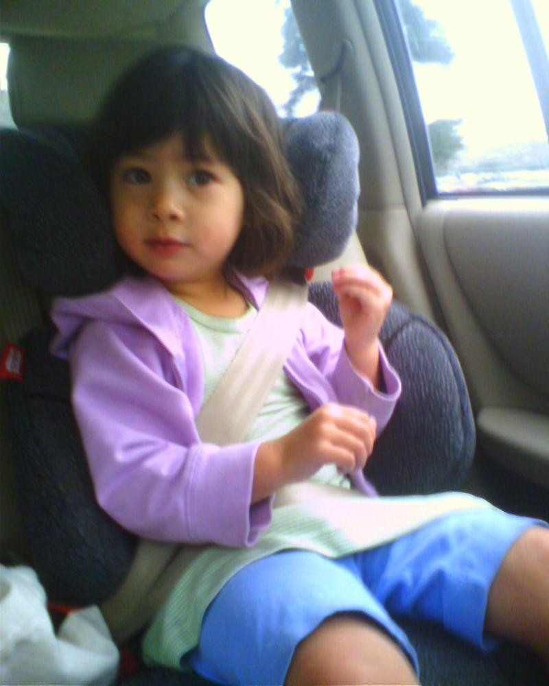 L. has moved up to a real booster seat!