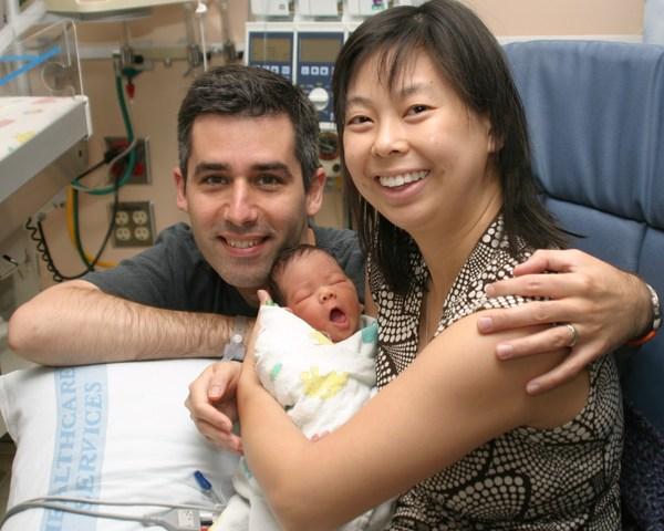 Holding Sabriya for first time. This morning the nurses feel like Sabriya is stable enough that we can hold her for the first time. This also means that we can finally start sharing photos of Sabriya without any CPAPs, oxygen tents, etc., in the way.