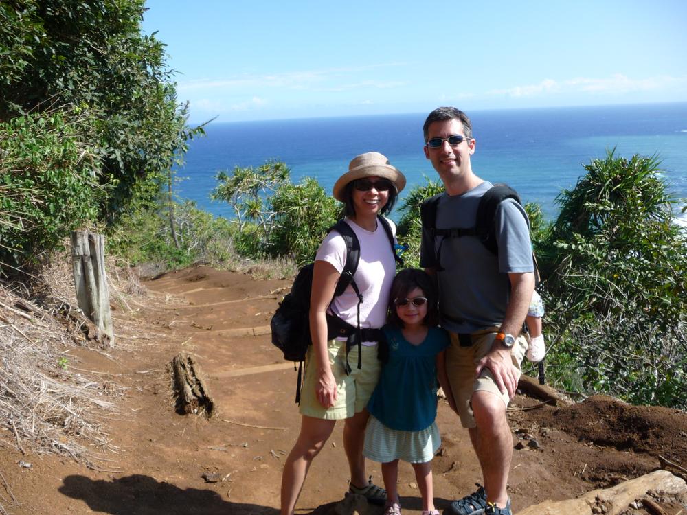 The view from the Pololu Valley lookout is indeed spectacular. The hike down to the black sandy beach isn’t too bad either. We’re pretty warm by the time we get there, so we all get our feet wet in the ocean. We retreat to the shade of some trees to eat our lunch. The girls have fun playing on a rope swing there, as well as a number of bench swings. The hike back up is considerably hotter than the hike down, and we’re all sweating hard by the time we reach the car again. We make another stop in Hawi on the way back in search of some shave ice, but the shave ice place is closed, so we have ice cream at the same coffee house we stopped at earlier. The drive back goes by quickly.