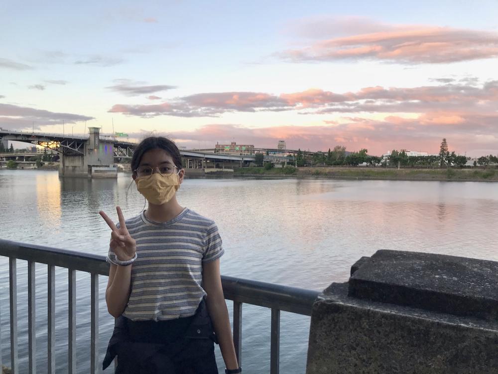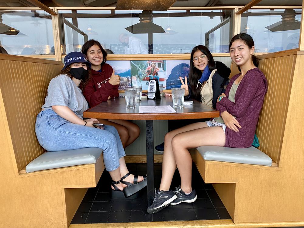 Liya’s senior class holds its prom dance at a pavilion in the Olympic Sculpture Garden. Liya (second from left) has a great time with her friends.