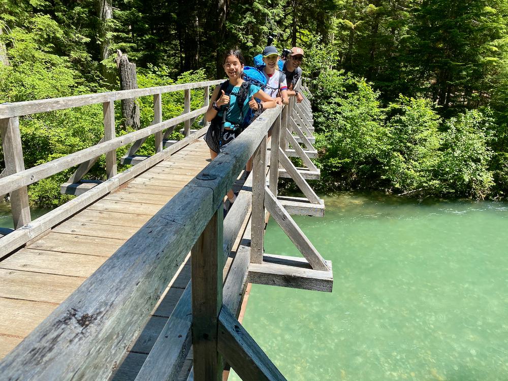 They head to the Thunder Creek area of North Cascades National Park. It’s a very busy season for outdoor activities everywhere, so there’s a line at the Marblemount ranger station to pick up first-come/first-served campsite permits. They manage to get permits to camp at the McAllister campground and Junction campground, both of which lie along Thunder Creek.