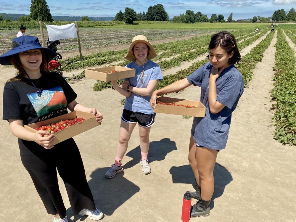 We pick strawberries at Bailey Farm in Snohomish. Jan, Anya, Liya, and Evrim go, along with Lilian, Anya’s friend from the NSIL-Y program who’s staying with us for a few days.