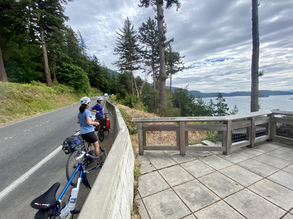 The road out of Bremerton is a busy, loud highway, which we’re glad to get off of. We eventually connect to a scenic road along the Hood Canal. The turn-off from there is an extremely steep hill; we’re eventually forced to walk our bikes past the steepest part.