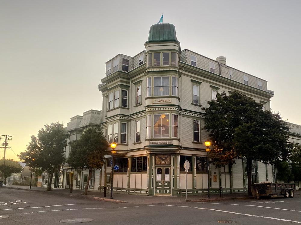 We’re elated to reach Eureka because we’ll have a rest day tomorrow. Our lodgings are at the Inn at 2nd and C. The building dates to 1888, and has more character in a single one of its bay windows than any other entire place we’ve stayed at on this trip. The New York-style pizza we get for dinner is fairly good.