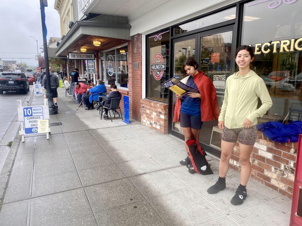 Anya’s eager to get back to Seattle — she has a middle school reunion this afternoon that she wants to attend. When Jan and Liya stop for a snack, Anya says she’s going to keep going so she can make her reunion in time. Five minutes later, Liya exclaims, “Anya’s coming back!” Anya’s phone has died, so she has no way to navigate. She rides with Jan and Liya again for a short while through the town of Bothell. When Jan and Liya decide they’re going to stop at a Starbucks to use the restroom, Anya checks Jan’s phone map, and decides the route from this point is simple enough that she can manage it. She pedals off.