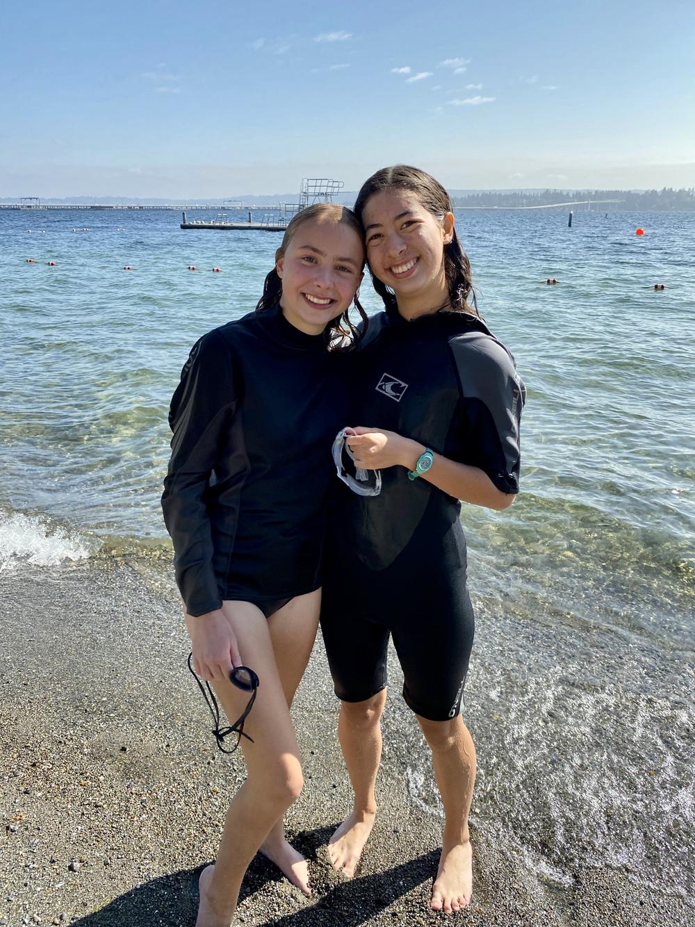 Liya and her friend Katherine swim 1.45 miles across Lake Washington. A few months ago, Liya thought this would be a fun challenge, and Katherine agreed to do it with her, and Katherine’s parents, Marc and Megan, sign up as boat escorts. Leading up to today, the girls do a number of training swims to build endurance and confidence they could make it across.