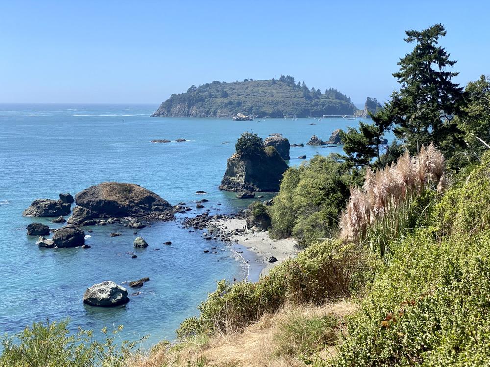 The route now follows the coast again. Along the aptly-named Scenic Drive, we have to stop at every bend in the road to take another photo. The Hammond Coast Trail, the first bike trail we’ve been on in days, is a real treat.