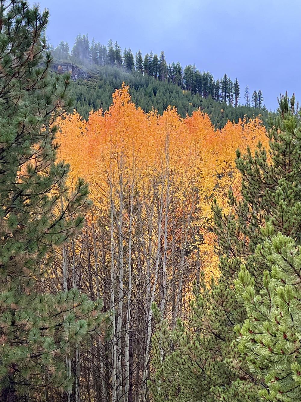In the afternoon, they drive out of the city again to see scenic Tumalo Falls. The falls are pretty, but are outshone by the striking fall colors of nearby aspens.