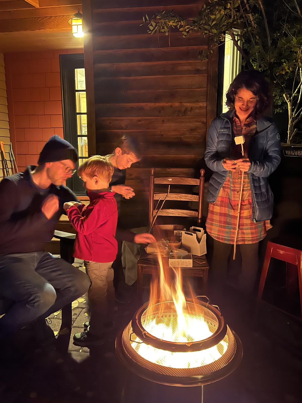 Jan and Chris’ sister Skye arrives in Bend around dinnertime with Jared and their sons, Leif (7) and Auden (4). Everyone meets up at Wild Rose for Thai food, then retires to Chris and Julie’s for a backyard fire and marshmallow roasting.