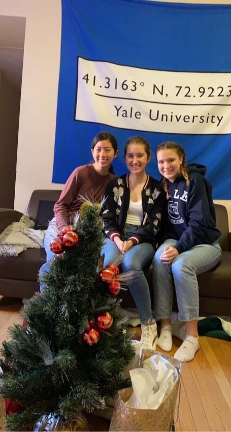 Liya and her suitemates celebrate the holidays with a Secret Santa gift exchange. Liya’s pictured here in their suite’s common room with Sadie and Court.