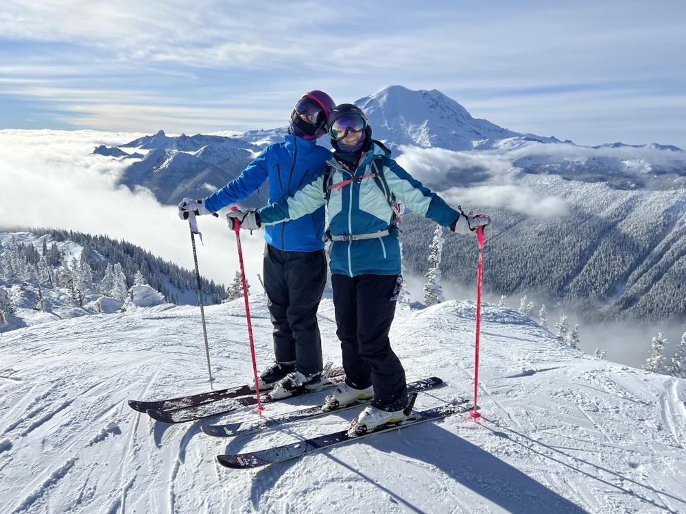 Angela, Jan, and Liya enjoy a cold but clear day of skiing at Crystal Mountain.