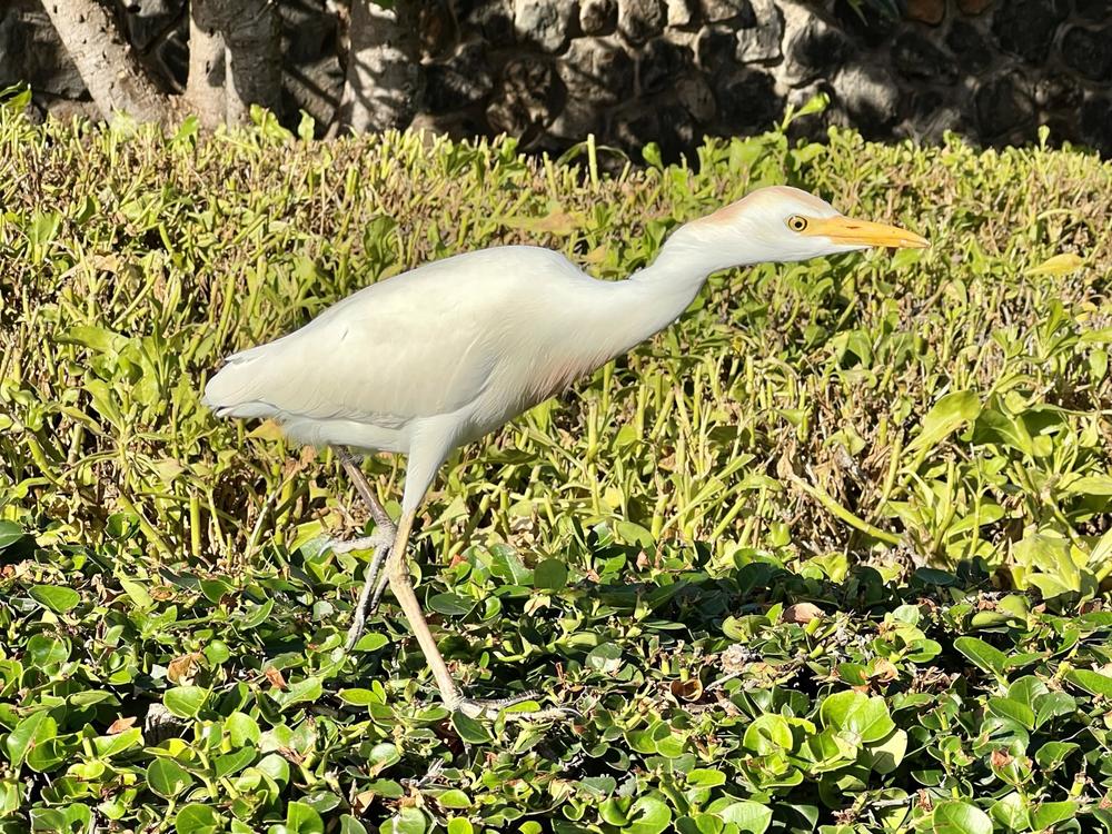 Bree goes for a long afternoon walk on her own along the beachside path, and Jan and Angela do the same the other direction. They make it as far as the new Andaz hotel, which sits on the site of the former Stouffer Renaissance hotel where they stayed on their first trip to Hawaii 25 years ago. On the walk back, they watch an egret walking awkwardly along the top of a hedge as it hunts anoles (small gecko-like critters).