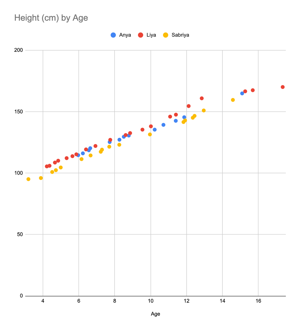 Before repainting the column, Jan transcribes the height markings we made for the girls as they were growing up. As the oldest, Anya was the tallest girl for years, but when adjusted for age, it’s clear that Liya was always consistently a little taller than Anya.