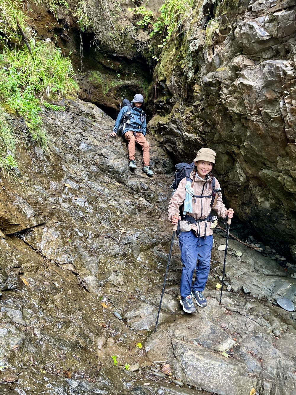 The three have lunch on the beach. Since Jan’s not hiking very far on this trip, he’s brought a few camping “luxury items” to help Atsushi and Miho enjoy their last two days of hiking. Case in point: a somewhat ridiculous, ultralight titanium hand-cranked coffee grinder made by a boutique camping gear company from Japan. Miho doesn’t drink coffee, but Atsushi happily accepts a cup of fresh-ground, French-pressed coffee.