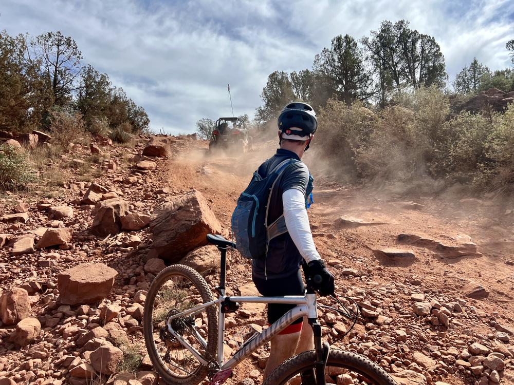 Today’s outdoor activity in Sedona is an off-road bike ride. Chris has rented two hardtail gravel bikes and picked out a loop to ride. The loop includes two trails popular with off-road vehicle drivers: the Diamondback Gulch Trail and Outlaw Trail.