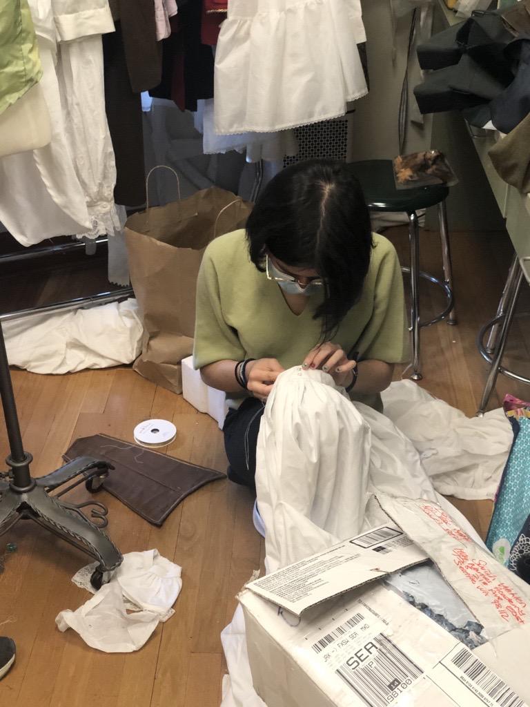 Bree has invested a great deal of energy into creating a costume for the character of “Madame de la Grande Bouche”, the lady-in-waiting who has been turned into a wardrobe. Bree’s designed and created a full ballgown for the costume that includes a number of features. The gown has drawer panels in front that serve as functional pockets — during an early scene, Madame pulls various articles of clothing out of the drawers. The gown’s other trick is that the panels are detachable for the show’s final act, in which Madame and the other characters are released from the curse and turn back into people.