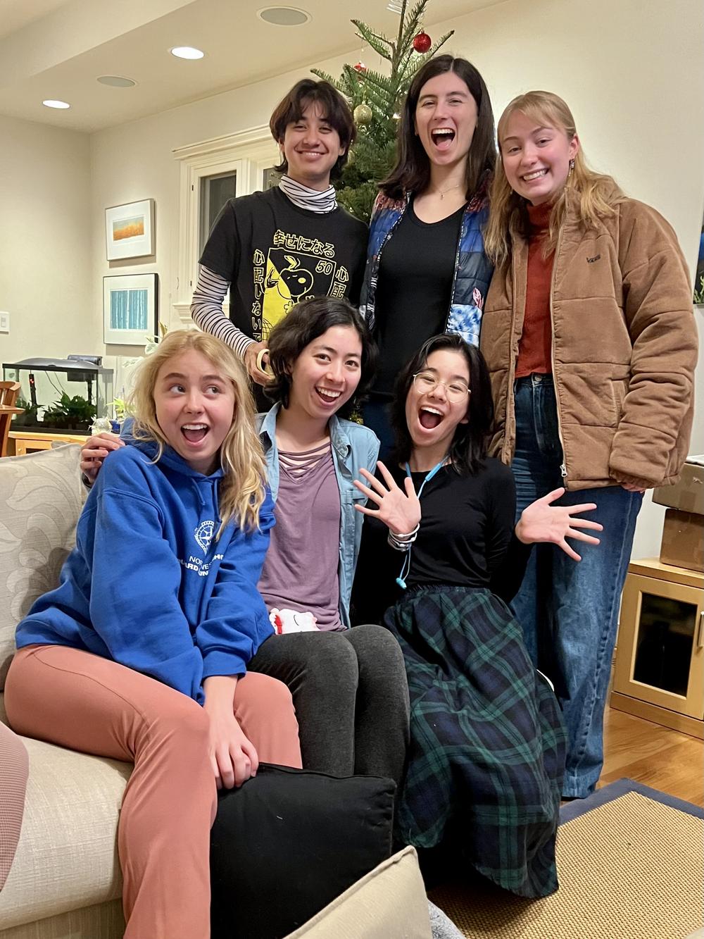 Liya has our longtime family friend Katherine over, and Katherine’s sister Kaila stops by too. A third friend, Ariella, rounds out a small reunion. (Top row: Evan, Ariella, Kaila; bottom row: Katherine, Liya, Bree)