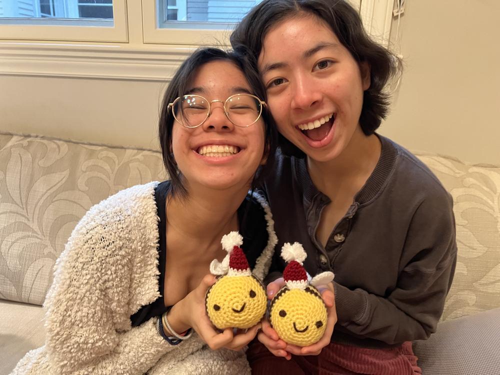 Merry Christmas! Jan brings Lyn over in the morning to spend the day with us. When Evan eventually surfaces around 11:00 am, we open presents. Evan’s gifts to everyone are crocheted bees he made with little Santa hats.
