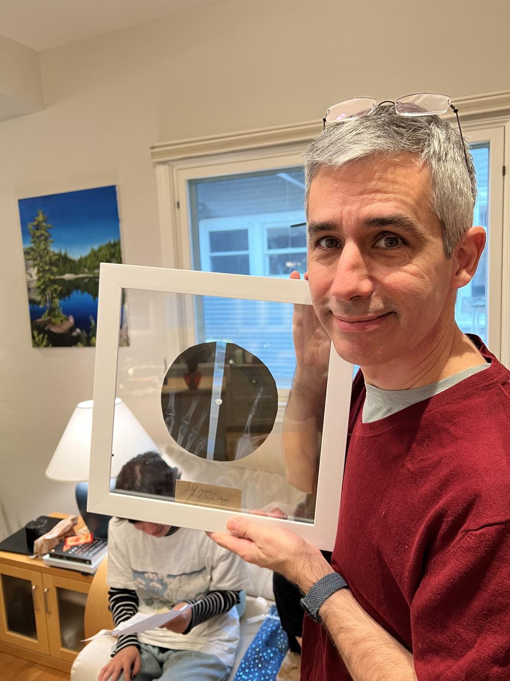 Angela’s gift to Jan is his own restored desk lamp that had mysteriously stopped working months ago. A local repair shop was able to make it as good as new. The cats will be particularly delighted by this gift — they like to sit under the lamp’s warm incandescent bulbs. Since Jan’s been making do with an LED desk lamp, they’ve still been sitting under it, but are presumably confused about why it doesn’t warm them up.