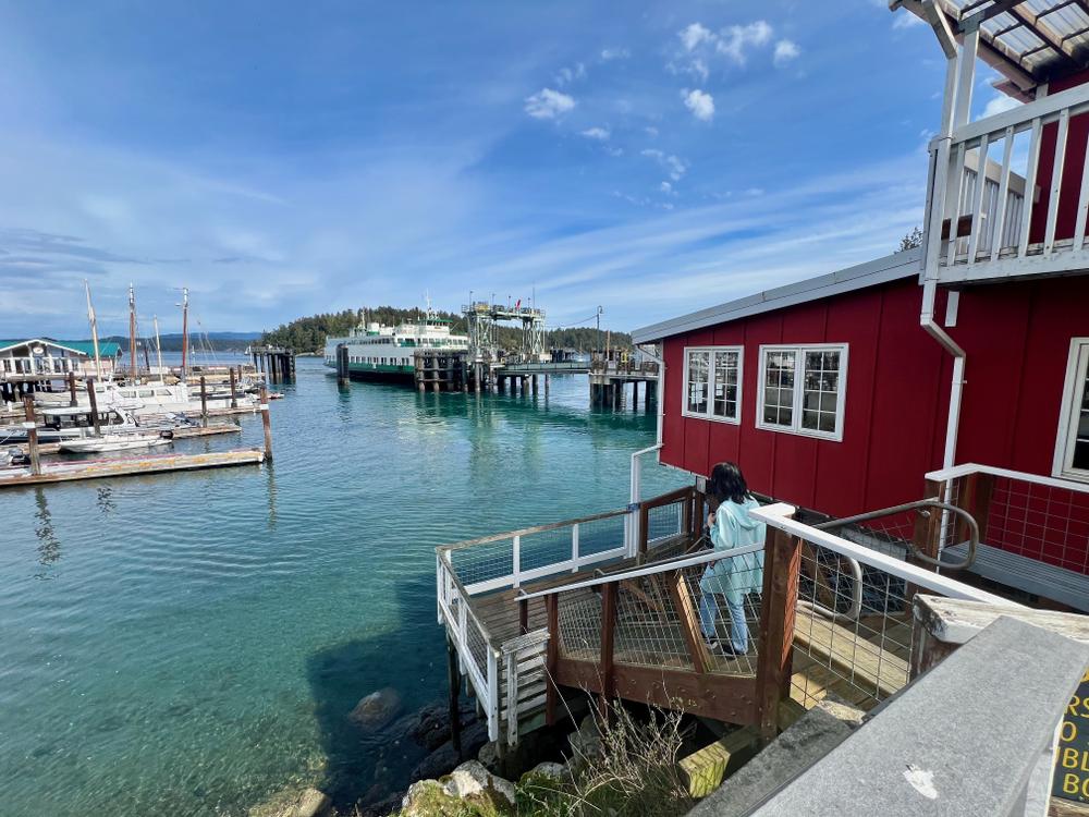 We have lunch in Friday Harbor at the Bakery San Juan, then walk through town. Bree picks up a cardigan at a thrift store, we poke into a bookstore, and we wander down to the waterfront.