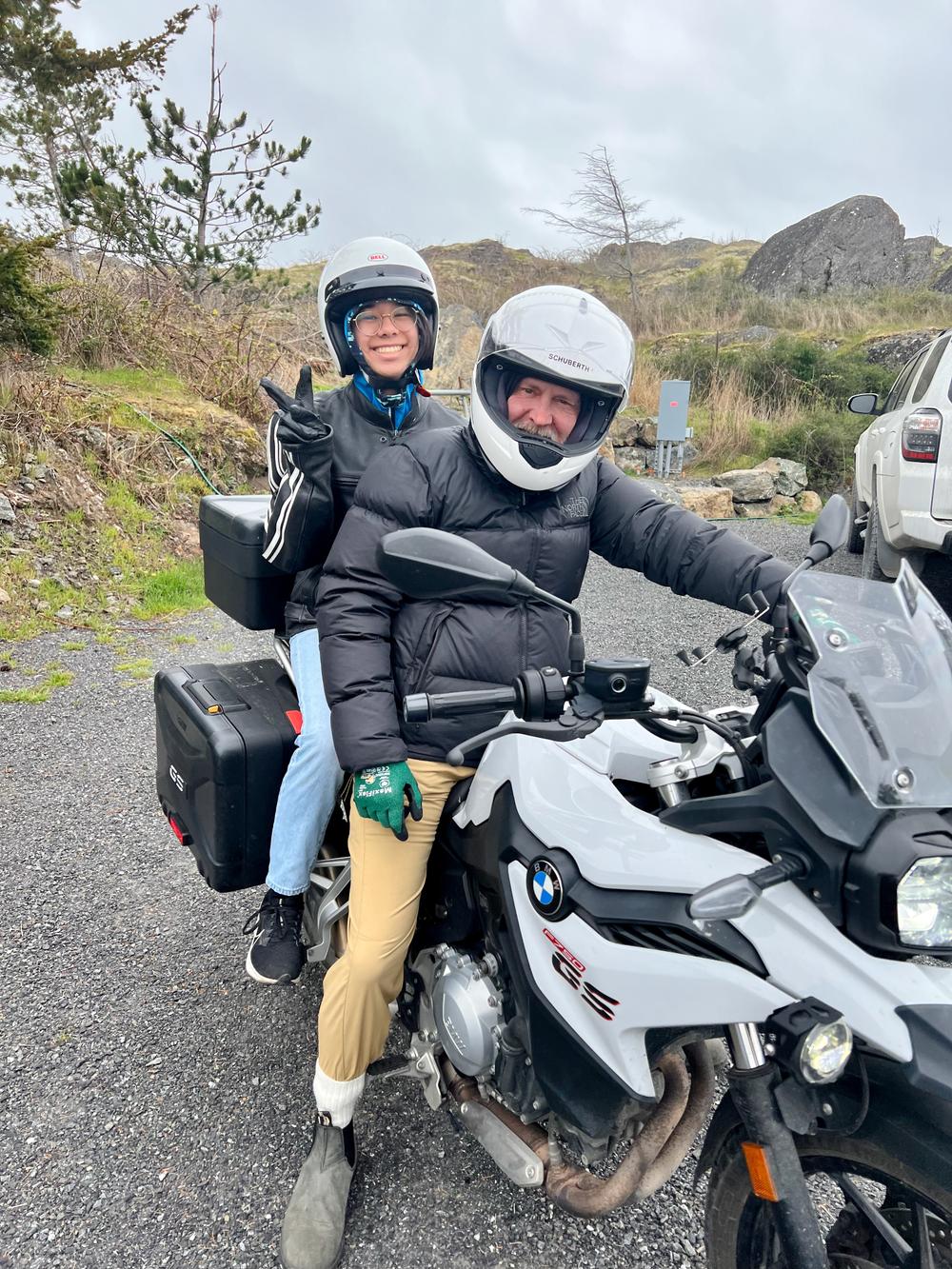 Marc has a number of toys, including a motorcycle. Bree happily accepts Marc’s offer of a motorcycle ride.