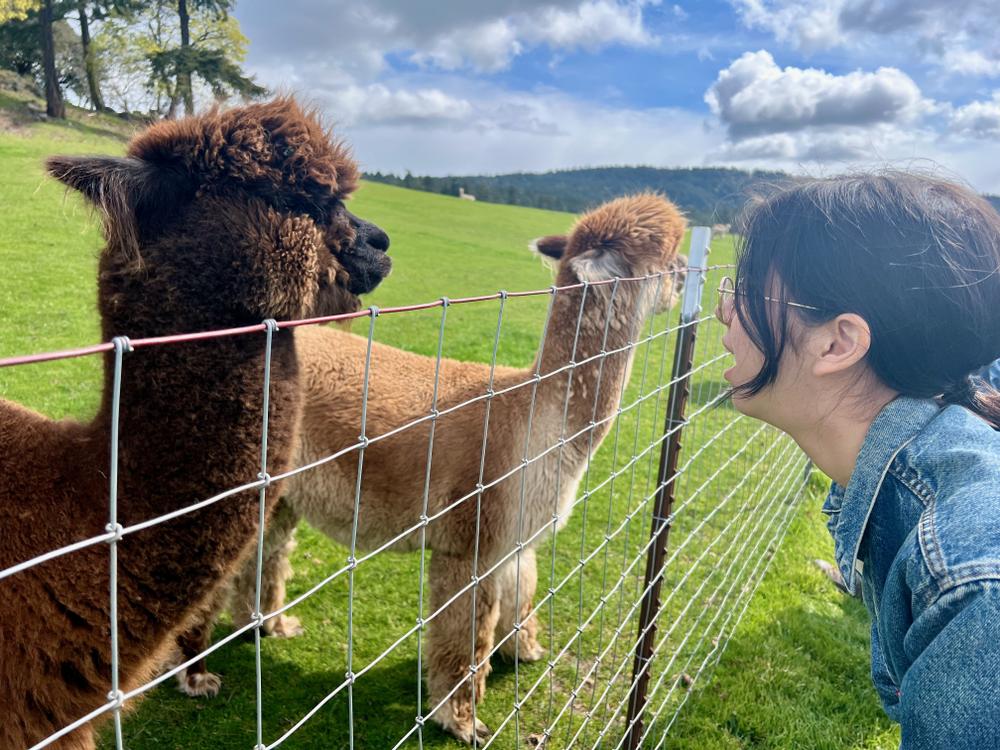 After lunch, Marc takes us to Krystal Acres farm so we can look at their alpacas. They’re very fluffy and very cute.