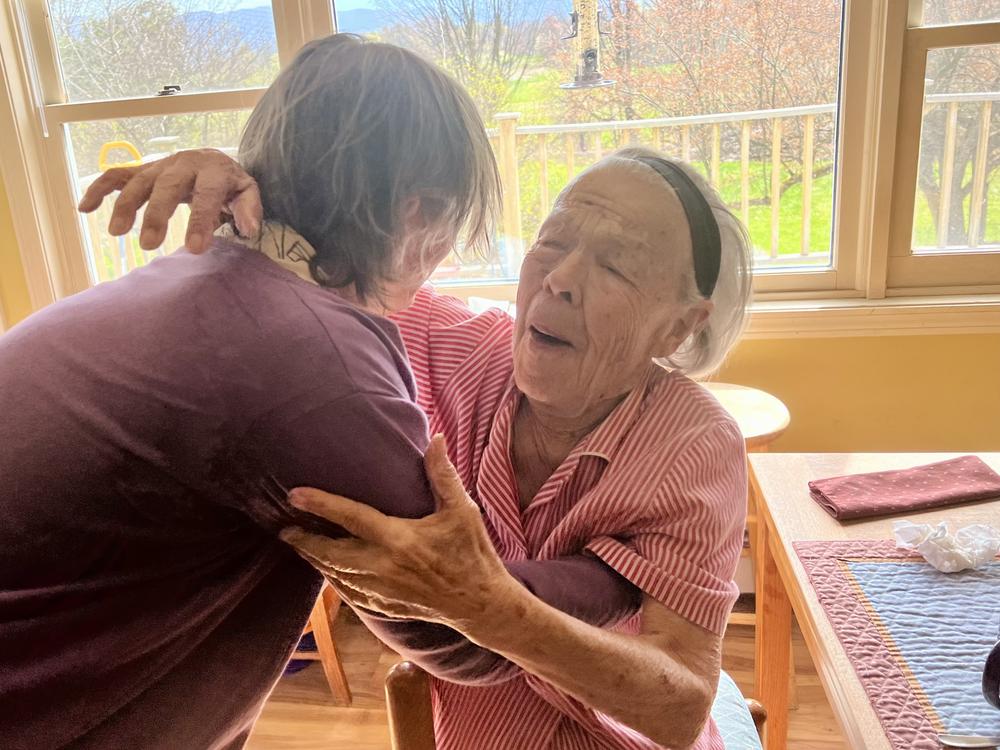 Jan and Lyn spend a little of the morning walking around Middlebury’s town green and stopping at Little Bean Coffee Roasters. In the middle of the morning, they make the short drive out of town to the rural home of Dave and Diane. When they arrive, Chuckie is sitting in the kitchen. She’s absolutely delighted to see Lyn again — it’s probably been 6 years or so since they last saw each other. Dave says that this is probably the happiest he’s ever seen his mother. Finally Chuckie says, “Oh, geez, I want to go get changed out of pajamas!”
