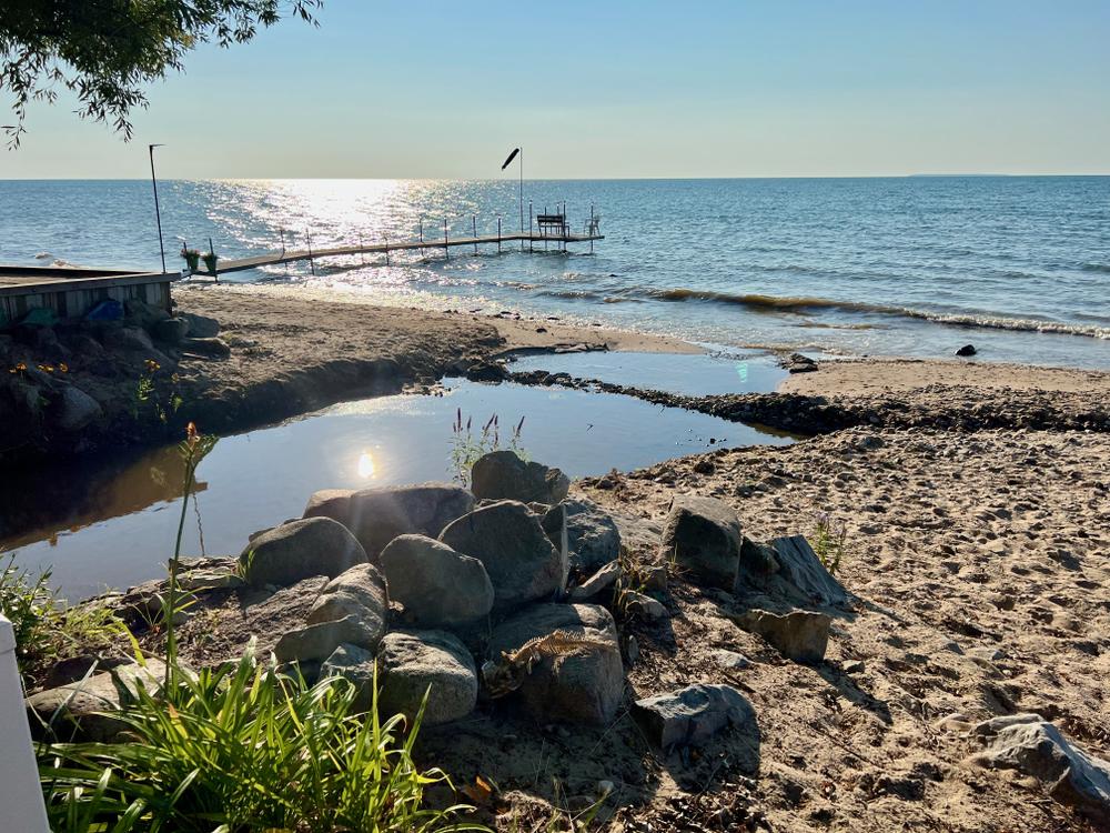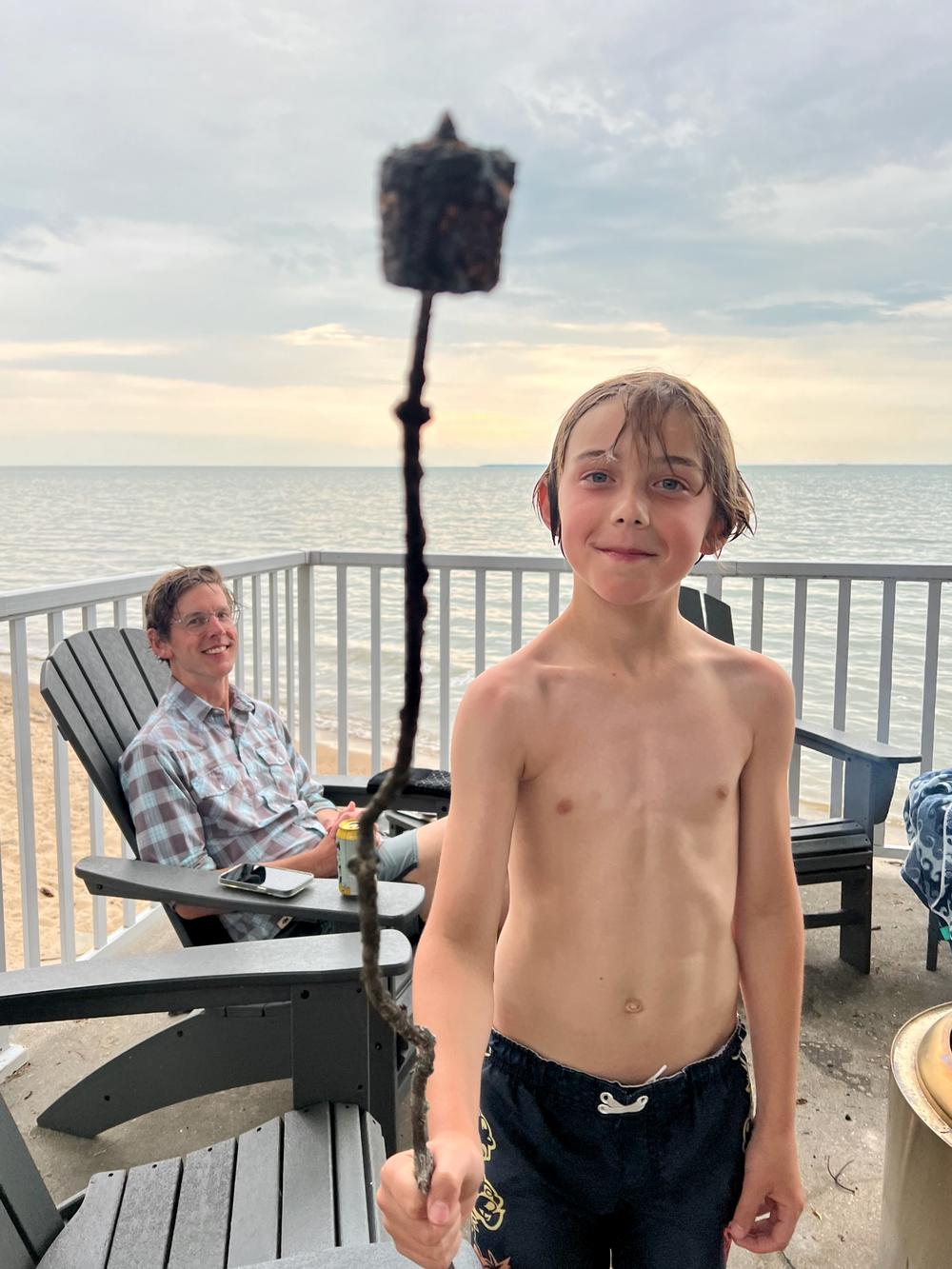Skye, Jared, Leif (now 10), and Auden (7) reached our rental cottage earlier today. We’re staying at a cottage called “S’mores Beach”, which happens to sit right next to the cabins Bree, Mom, and Chris stayed at the last time I was in Au Gres in 2017. Skye and her family are there to greet us when we pull in at 10:00 pm.
