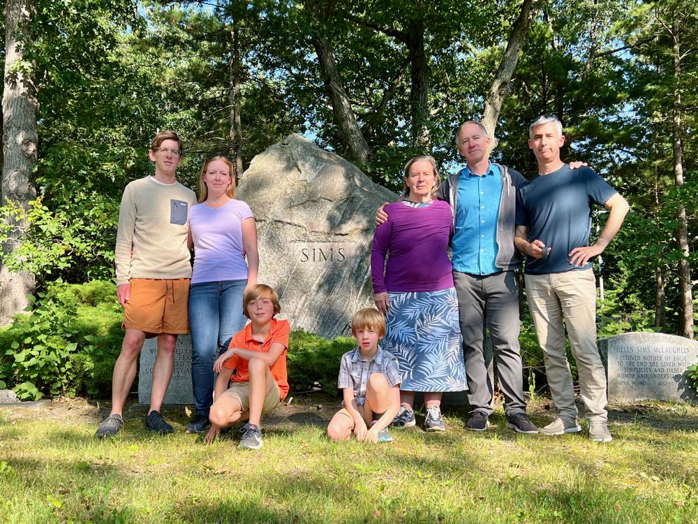 In the late afternoon all seven of us make the short drive down US-23 to the Sims Family Cemetery. It’s nice to make a casual visit on a trip that’s not the focus of a memorial service. We take a while to explore gravestones. Most of the stones are grouped roughly by area of the family, but we spot one stone we hadn’t noticed on previous trips. It’s far off on its own, oddly placed just next to the low rock wall marking the cemetery’s southern edge. We later learn from Gail that the man buried there apparently had a difficult relationship with his mother – his stone is placed such that it can’t be seen from his mother’s stone.