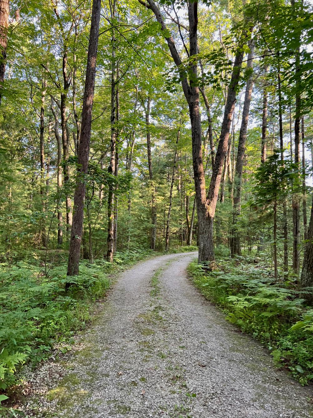 Chris and I make a walk back up Dick’s long gravel driveway to the main road. In the woods along the way we can still spot traces of the old 9-hole golf course our grandfather and uncle had built on their property. It’s now long overgrown. Walking back, we also enjoy seeing an old tree in the middle of the turning circle at the end of the driveway. This tree used to have a number of signs pointing to the towns where various family members lived and giving the distance to those towns. Those signs are also gone, and many of the old tree’s branches have fallen, but the tree is still thriving.