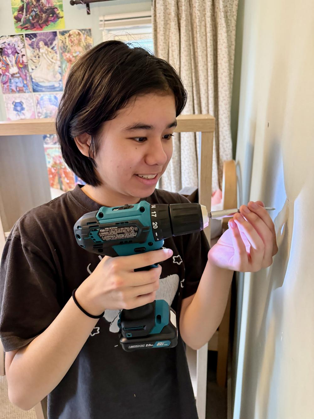 Bree purchases a new shelving system for her bedroom to organize her sprawling collection of costuming bits and bobs.