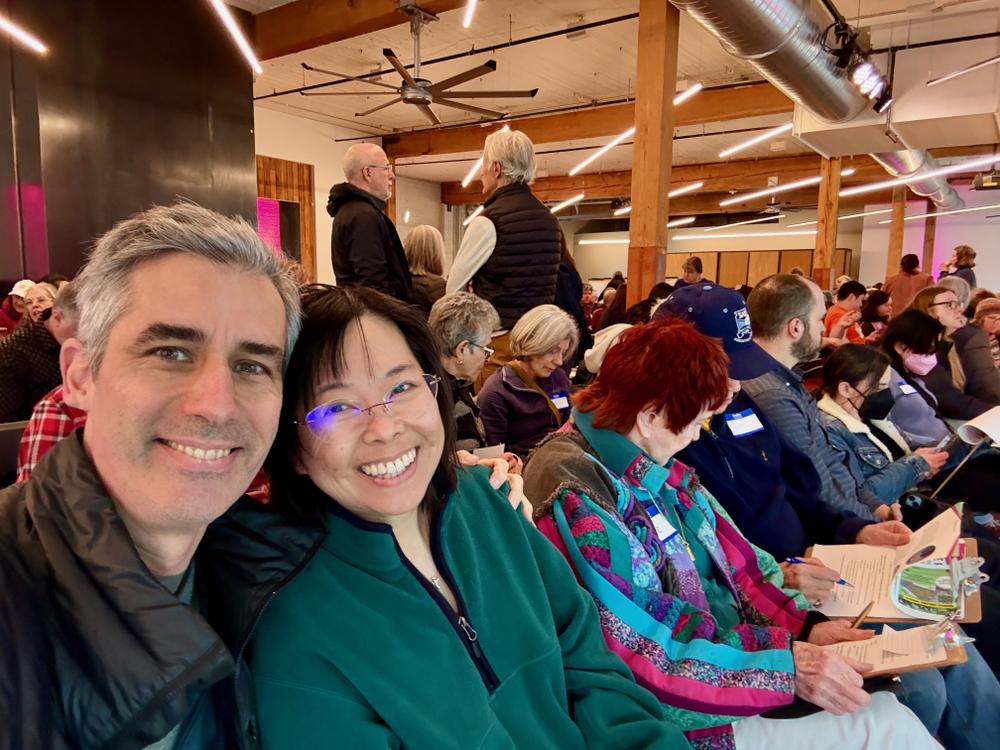 Jan and Angela attend a political seminar downtown hosted by WA representative Pramila Jayapal. We arrive just in time to get some of the last seats in the main room — even the overflow room ends up packed with hundreds of people.