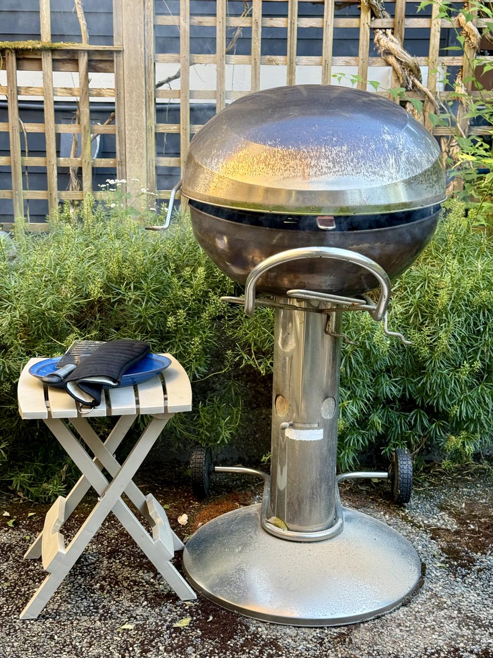 Jan fires up the charcoal grill, which we’ve now had for something like 20 years since it was first recommended by our friend Robbie. The grill is still usable, but it’s very old at this point and we’ll need to replace it soon. Nevertheless, the salmon comes out great!