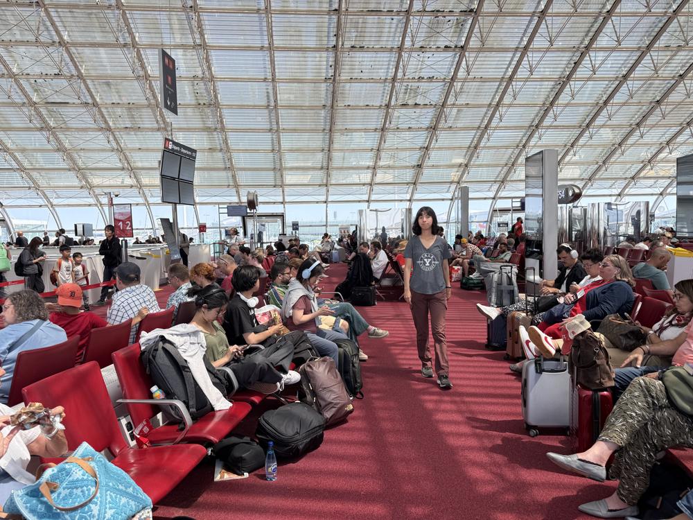 In the late afternoon we head to the airport and board our first flight to Charles de Gaulle. Bree doesn’t want to sit next to a stranger, so Jan swaps seats with her.