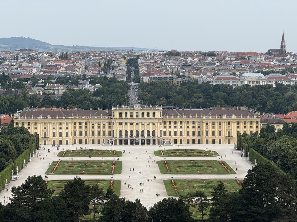 Our destination this morning is Schönbrunn Palace. The palace itself is probably interesting, but for us the main attraction is the hedge maze. We enter the palace grounds through the Orangerie and make our way across the enormous park. It’s broiling hot today so we do our best to take shady paths when we can.