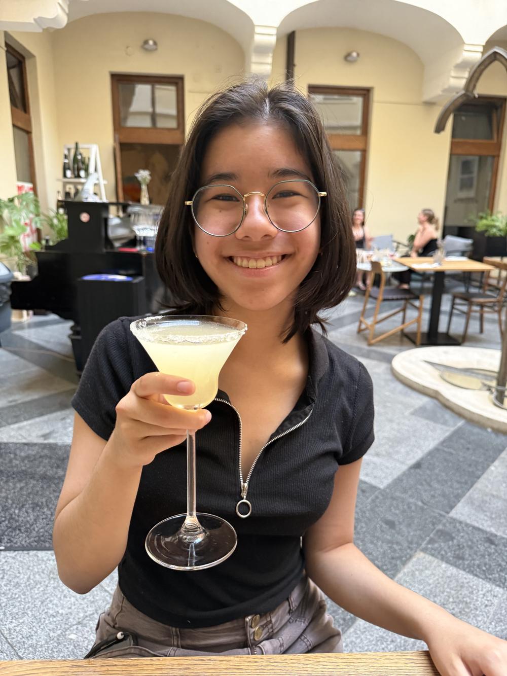We eat dinner at in a large atrium at Atrium restaurant. Bree, still a bit shy of her 18th birthday, successfully orders a cocktail that includes a rim with smoked salt. Angela describes the flavor as “bacon lemonade”.