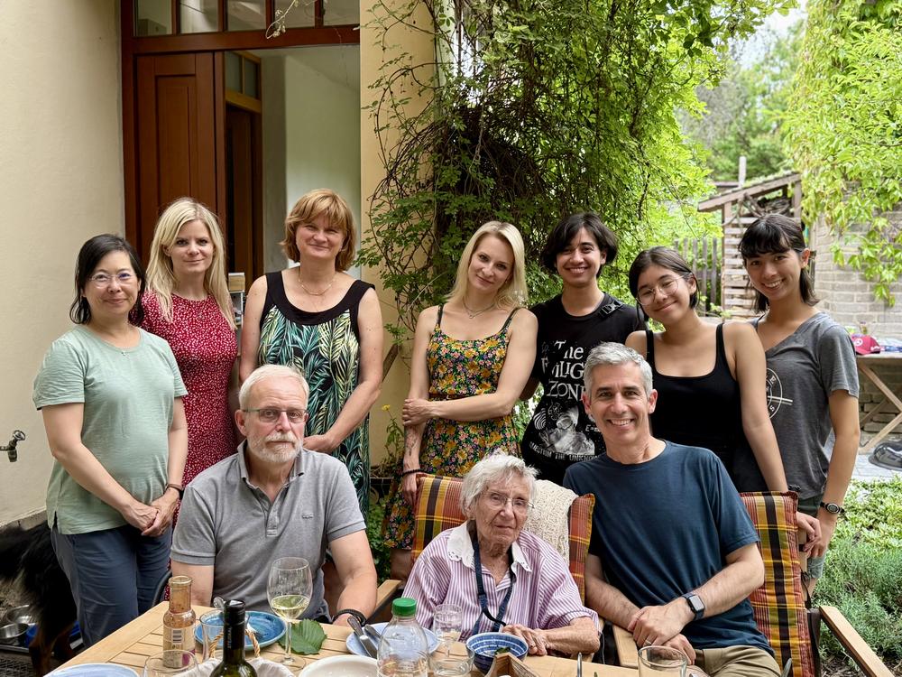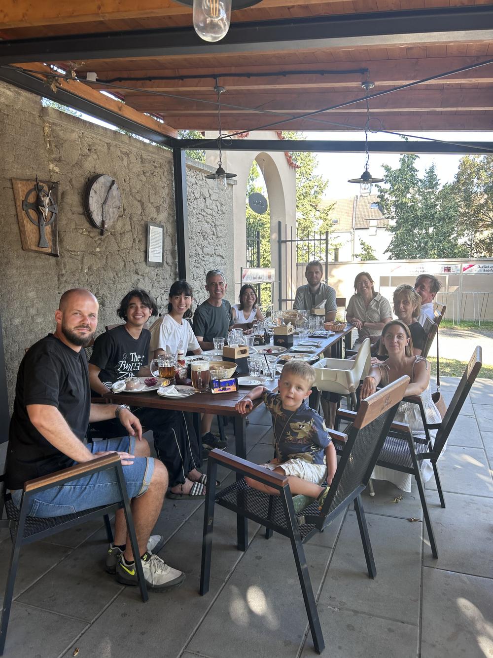 In the afternoon we travel to the northern part of Prague to meet more relatives, this time Jan’s cousin Mirka and her husband Petr. When Jan last saw them in 1990, their daughters Tina and Klara were toddlers. Now they have their own families: Klara comes with her husband Adam and children Arthur and Lea, and Tina’s husband Jan comes to represent her. (Tina’s away on vacation with their two sons.)