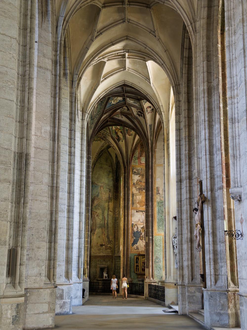We take a walk through the huge Saint Barbara church that was started in 1388 when the town experienced a silver mining boom. It was planned to be much larger, but a couple centuries later the mines ran dry, and it was only towards the end of the 1800s that they replaced the “temporary” wall at the back with a permanent one.