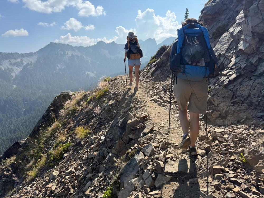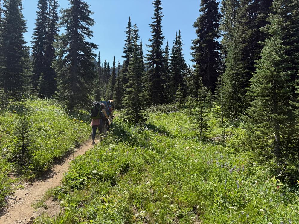 We descend from the pass a short distance to reach the Pacific Crest Trail. Jan last hiked this bit of trail in 2015 when he hiked across Washington. We almost immediately run into two women who are hiking the PCT southbound with plans to complete the entire trail.