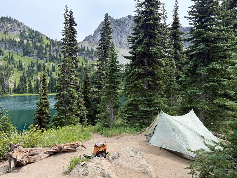 The full sun on the tents makes them a little stuffy, and eventually most of us decide to take a swim in the lake. The lake bottom has some sand in it, so it’s not as muddy as some alpine lakes get. Swimming is followed by reading books or more napping. There are a few bugs, but more of an occasional annoyance that a constant irritation.