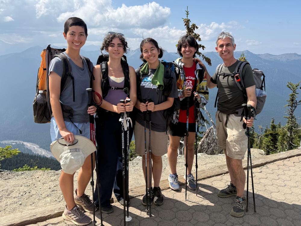 Rainier backpacking trip, Day 1. When Jan and Bree were planning out their summer, they wanted to make sure they had time for a backpacking trip. Liya was keen to join as well. Evrim has never been backpacking but was open to trying it, and eventually Evan asked to participate. (Angela has to work, and likes to visit the outdoors but not live in it.)