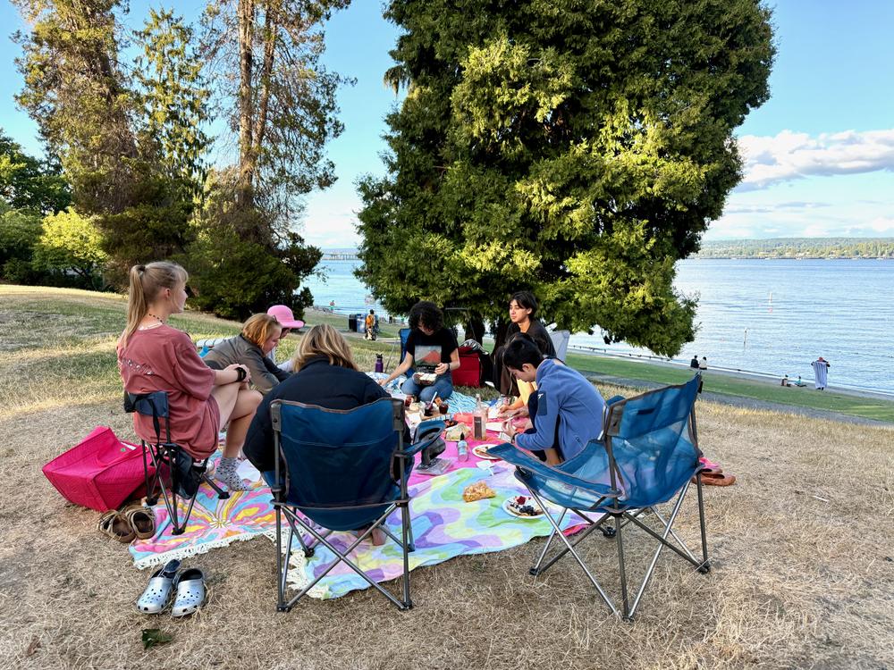 The campus sits on a peninsula on Puget Sound, so wherever you are on campus you can hear the cries of seagulls: “Ki! Ki! Ki! Ki!” The school’s teams are called The Thunderbirds, but Jan opines that they should have been The Seagulls. Liya proposes a team motto: “We steal your fries!”