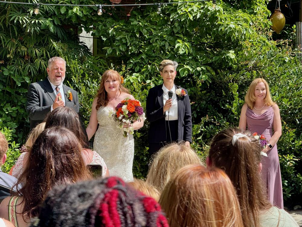 We attend the wedding of our long-time friend Pam to her fiancé Greg at McMenamins in Bothell. Both of them are theater kids, so they both make the most of the day: while Pam’s friends sing a processional for her, she herself joins in, singing as she walks down the aisle to Greg. Greg, for his part, acts as his own emcee during the reception.