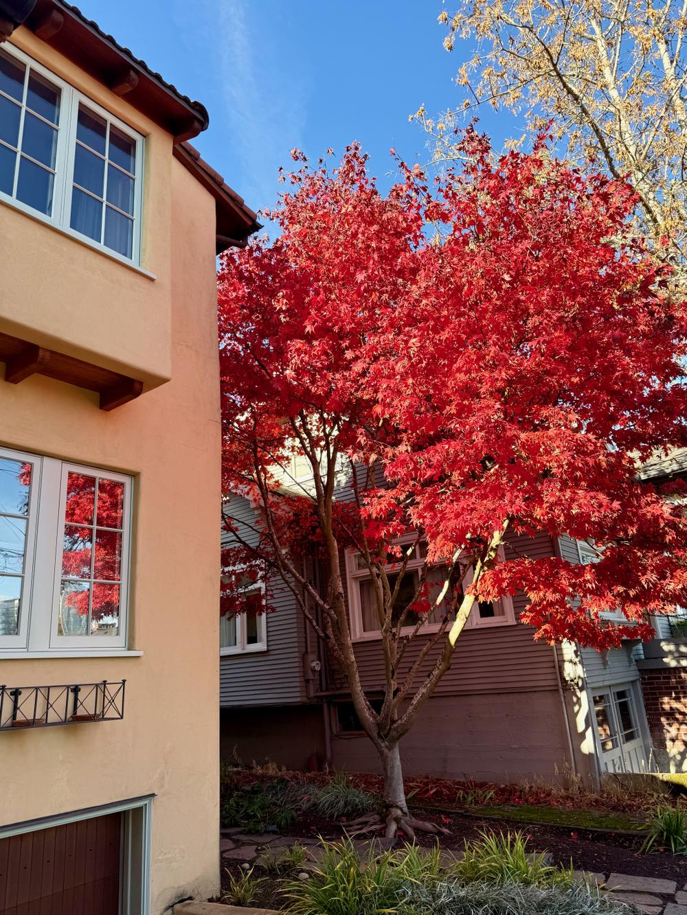 The maple tree on the north side of our house is at peak color.