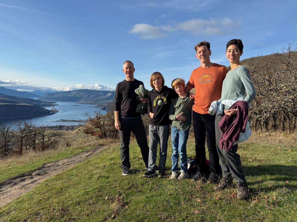 At the top, Leif’s excited to point out a bald eagle soaring overhead. Chris claims that it’s a “white-headed crow”. Leif disputes this. Auden sides with Leif.