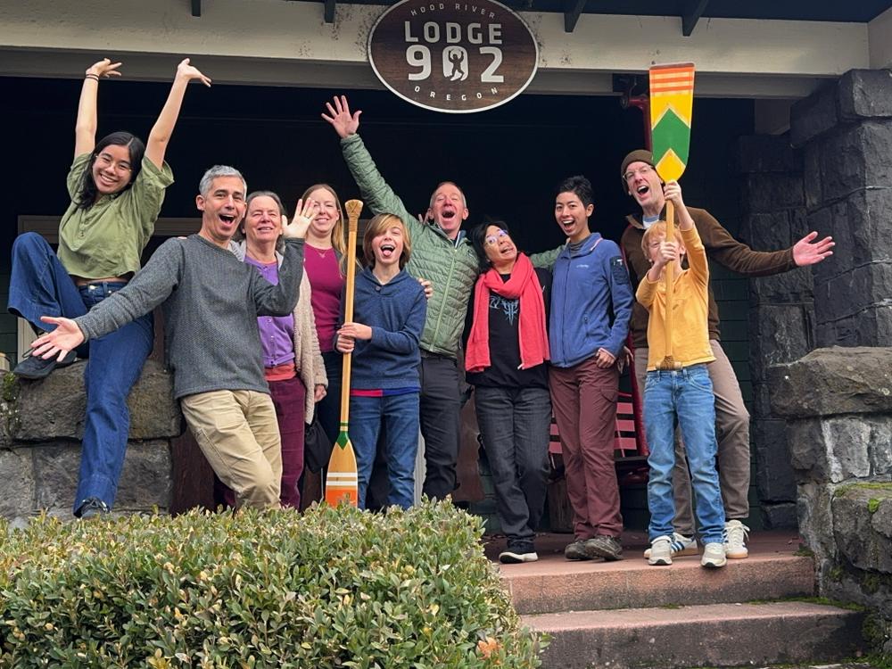 We reach Hood River around 4:00. Chris has already arrived, and so has Skye and her family. We’ve rented a huge house for the next few days — there are plenty of bedrooms and a nice living room and dining room.