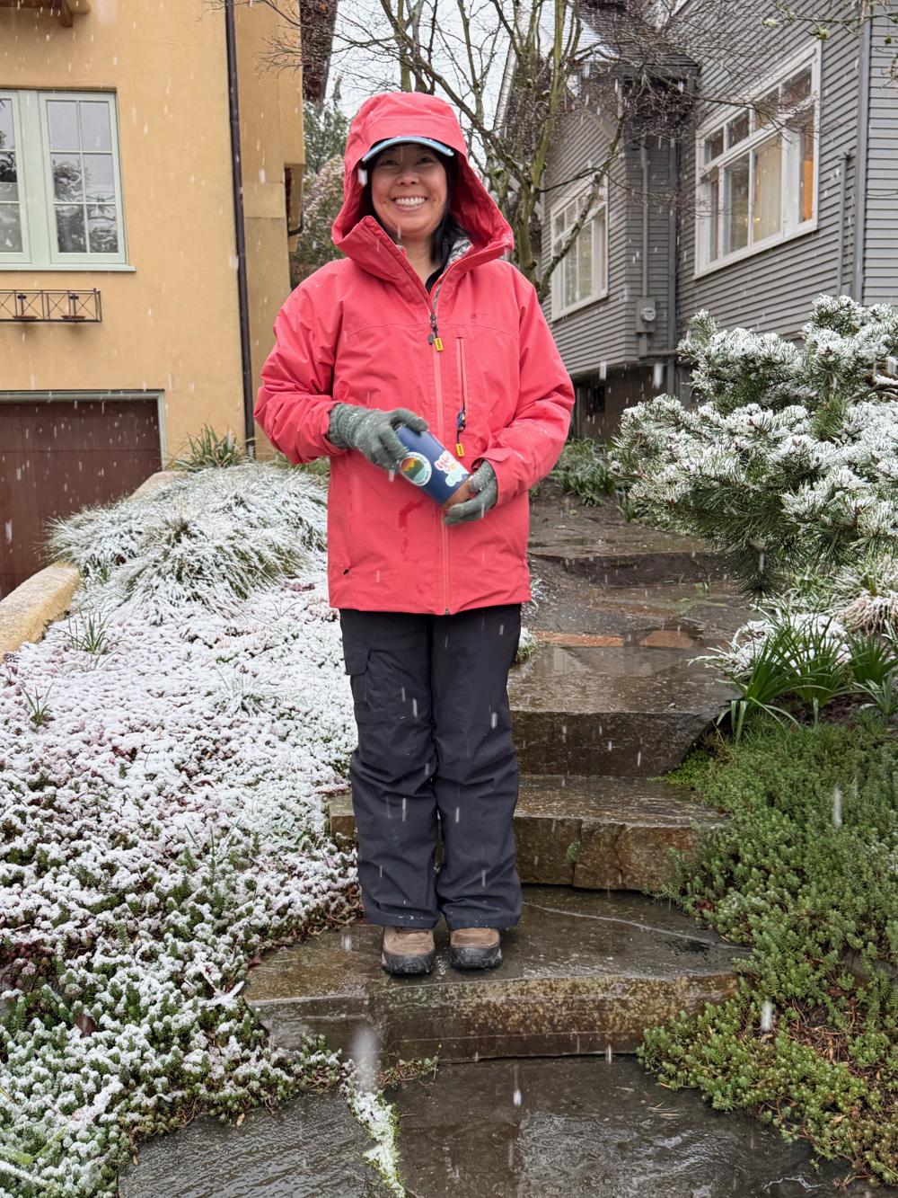 Although the Pacific Northwest has seen very little snow this winter, here at the edge of Spring the mountains are getting a fair amount. This week’s forecast predicted a blizzard bringing a ton of fresh snow today, so Angela and a friend had made plans to ski at Crystal Mountain. She’s up bright and early when she learns that snow and fallen trees have closed the road.